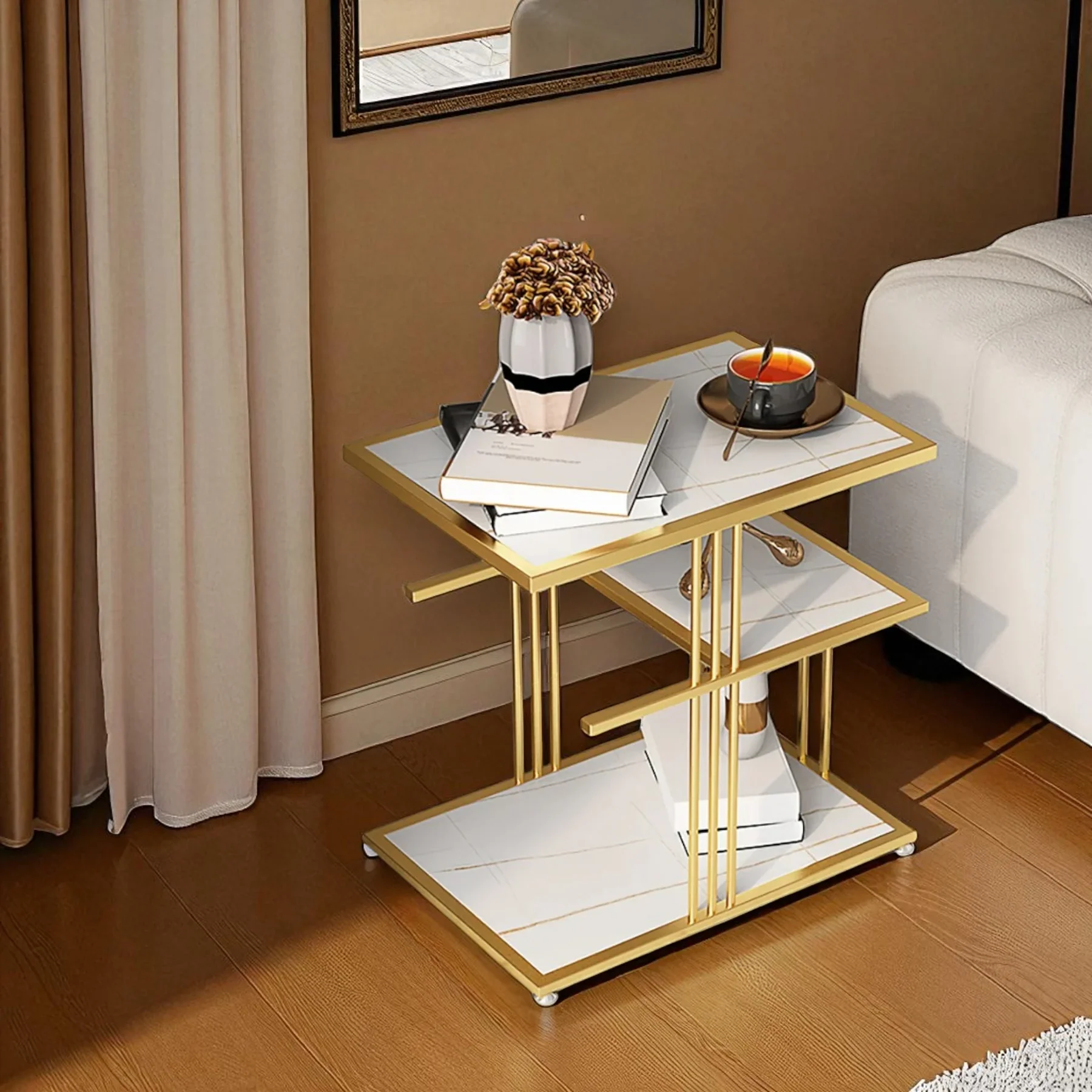 Add a touch of modern luxury to your living space with this Gold Metal Side Table with White Marble Shelves. Designed with elegance and functionality in mind, this 3-tier table offers ample space for décor, books, or your evening coffee. The sleek golden frame paired with glossy marble surfaces creates a perfect balance of sophistication and durability. Ideal as a sofa side table, end table, or bedside stand, it blends effortlessly with both contemporary and classic interiors.