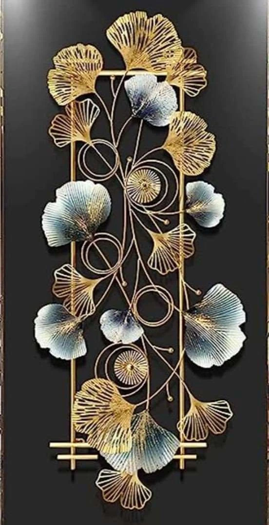 Enhance your interior with this stunning Golden Ginkgo Leaf iron Wall Art Panel, crafted from high-quality iron and designed to elevate any modern living space. The artwork features an elegant arrangement of gold and blue ginkgo leaves intertwined with delicate circular patterns, creating a sophisticated balance of nature and geometry.