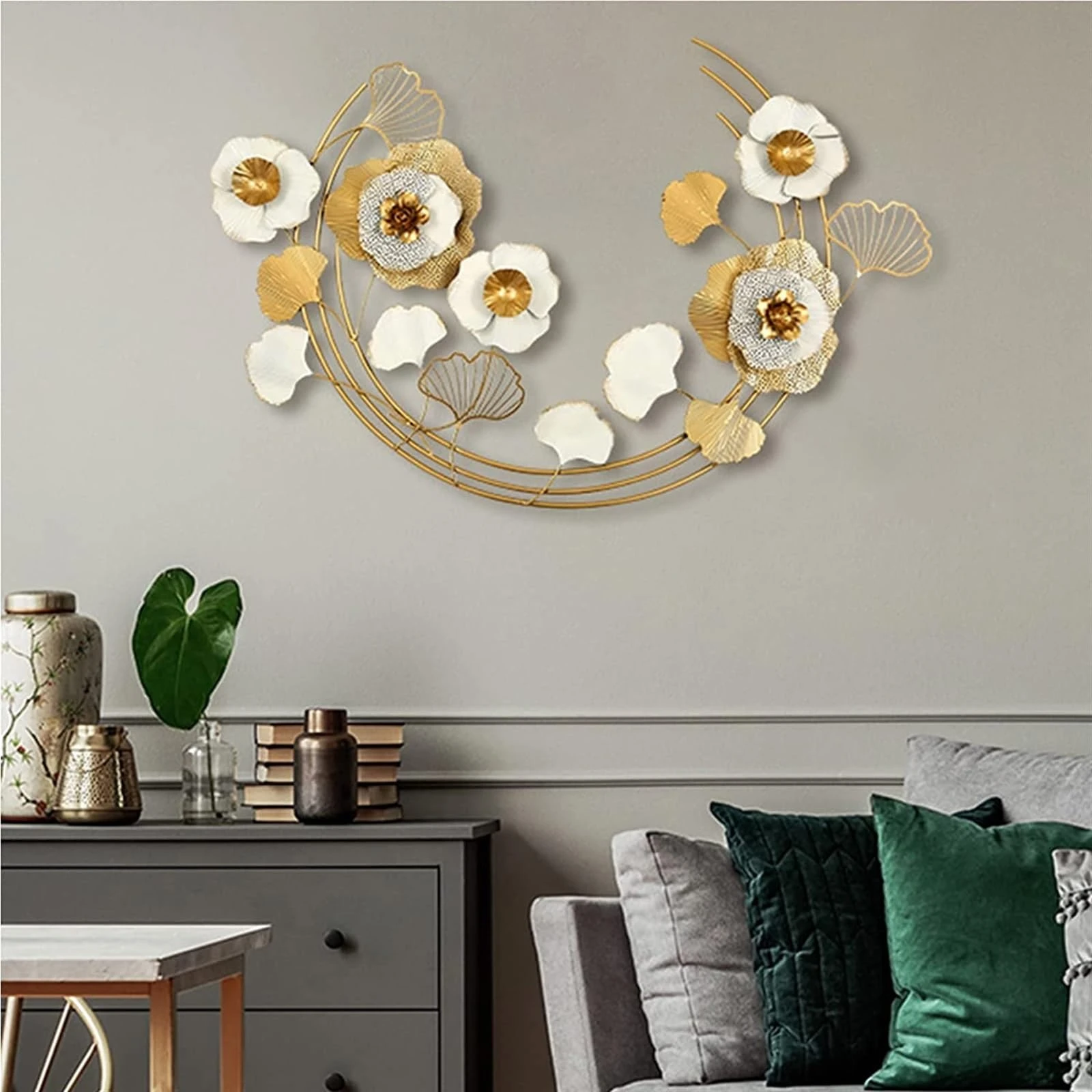 Elevate your interior with this elegant 3D iron Ginkgo Leaf Wall Art, crafted with a luxurious blend of golden and blue tones. The intricate metalwork features delicately shaped ginkgo leaves connected by graceful, flowing stems and circular accents, creating a modern yet nature-inspired masterpiece.