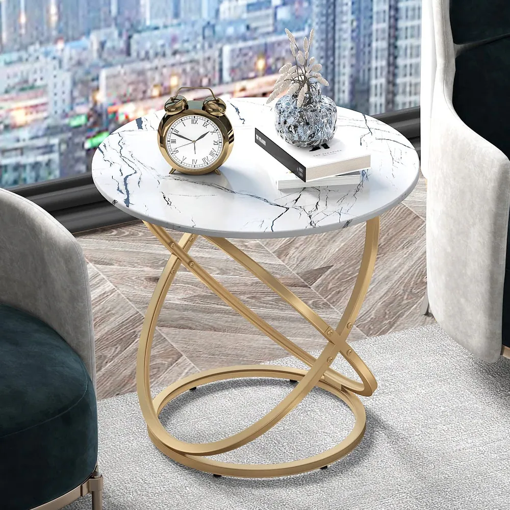 Luxury Round Marble Top Side Table with Gold Metal Base