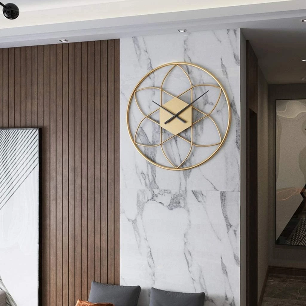 Elevate your interior with this Modern Geometric Gold Wall Clock, designed to blend contemporary elegance with artistic flair. Featuring an open-frame circular structure crafted from premium iron, this eye-catching timepiece showcases interlaced geometric curves surrounding a minimalist central dial.