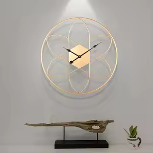 Its sleek gold finish adds a touch of sophistication, making it a perfect statement piece for living rooms, bedrooms, hallways, offices, or modern studio spaces. Lightweight yet durable, this clock functions as both a practical timekeeper and a stylish wall décor accent.