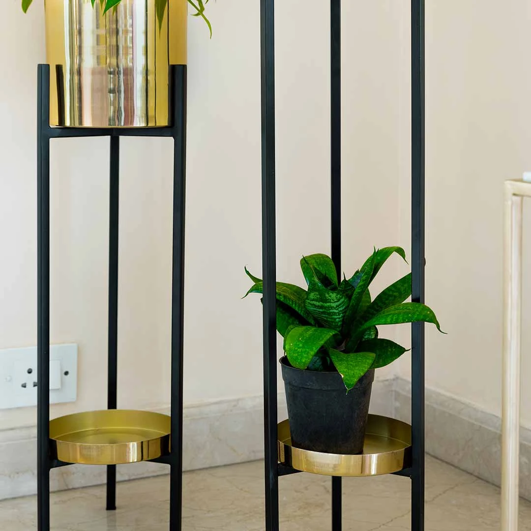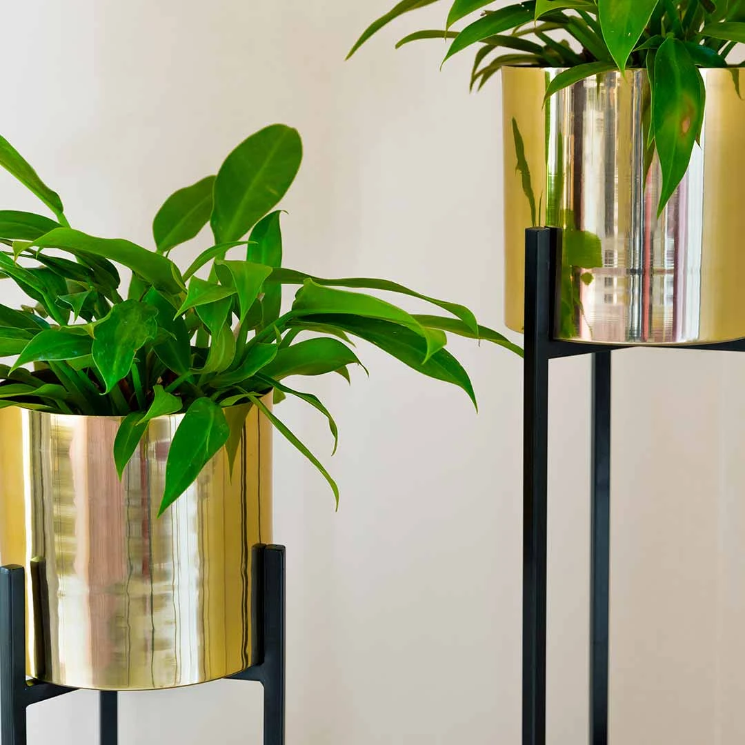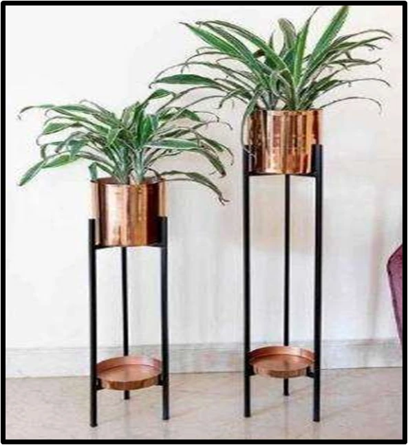 Bring contemporary elegance to your home with our Modern Iron Floor Planters with Black Stands. Designed to elevate your greenery—literally and stylistically—these planters combine sleek black iron frames with lustrous gold and copper finishes. Perfect for both indoor and semi-outdoor spaces, their minimalist structure complements modern, industrial, or luxe interiors.