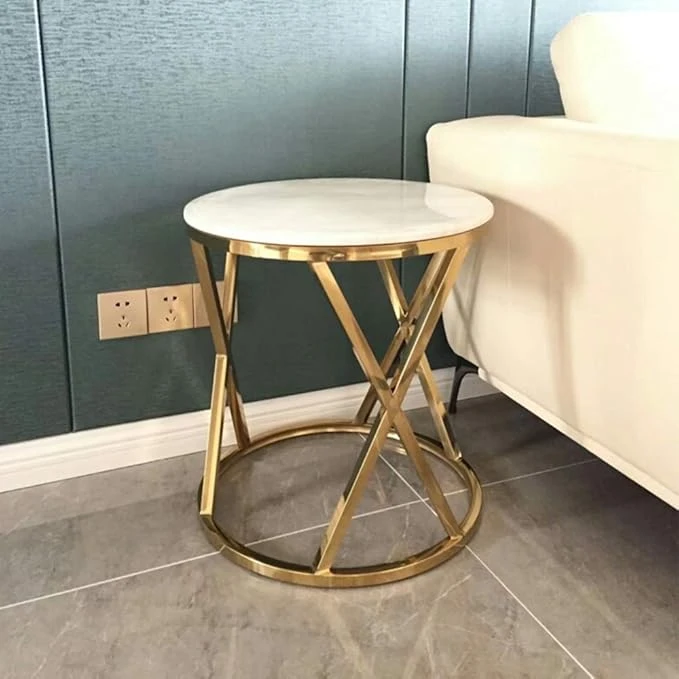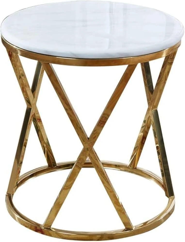 Bring timeless elegance and luxury into your home with this Round Gold Metal Side Table with White Marble Top. Designed with a stunning crossed metal base in a radiant gold finish, this piece perfectly balances modern sophistication with practical design.