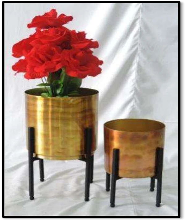 Enhance your home or office with the warm, vintage charm of this Two-Piece Rustic Copper Cylindrical Planter Set. Featuring a beautiful, aged copper finish with natural patina variations, these pots rest on minimalist, short black stands, adding an elevated yet grounded look to your greenery.