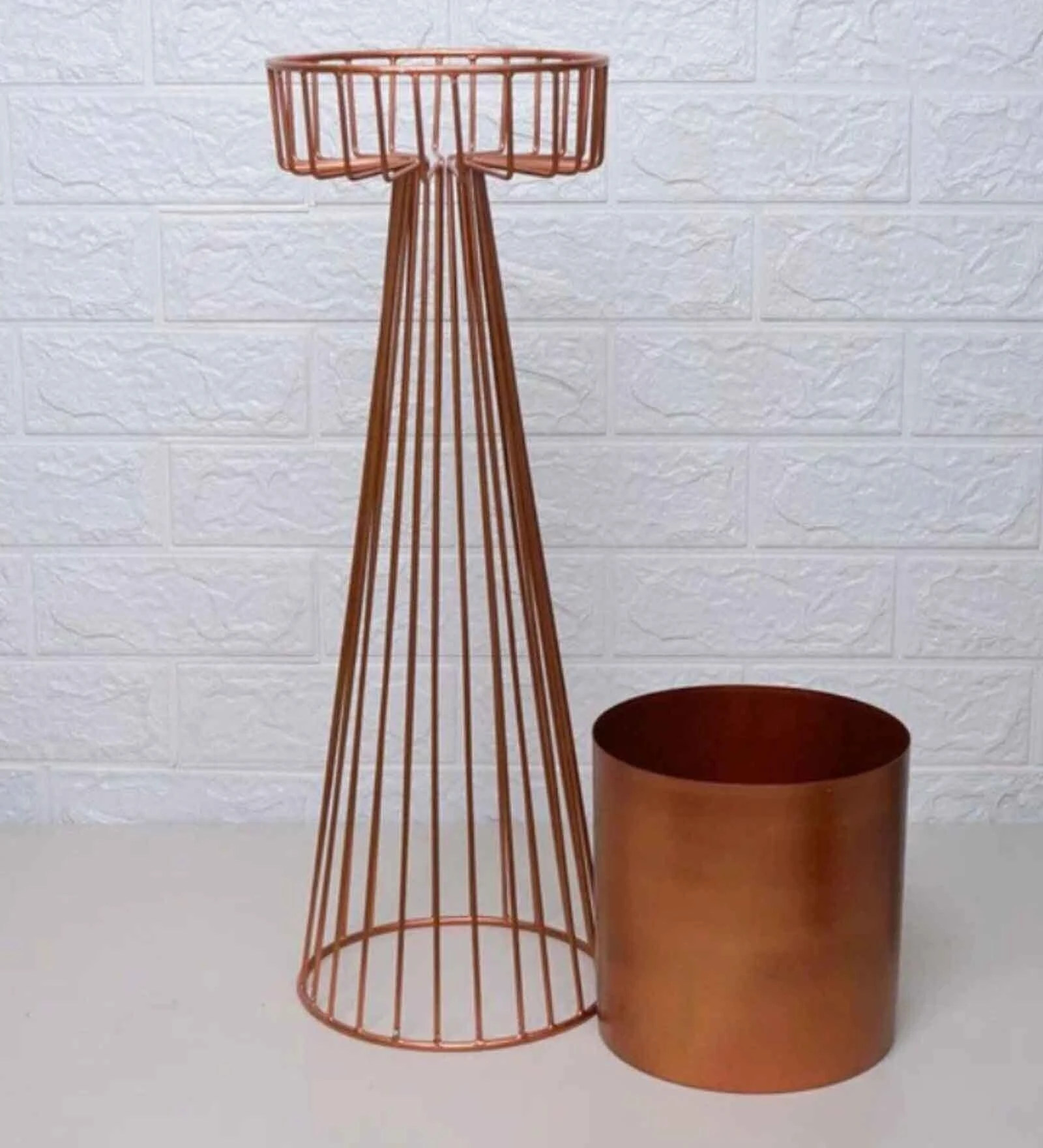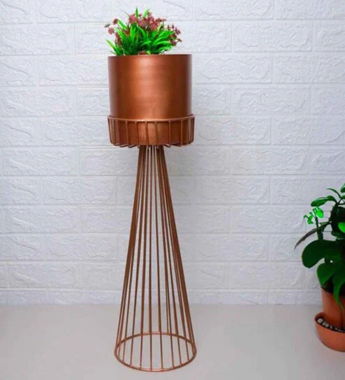Add a touch of luxury and greenery to your home with this Set of 2 Modern Copper Iron Planters with Stands. Crafted with premium-quality iron and finished in an elegant copper tone, these planters feature a sleek, minimalistic design that enhances any corner of your home, balcony, or office. The conical wire stand provides sturdy support while adding height and dimension to your indoor plants. Perfect for succulents, snake plants, or decorative foliage, these planters blend contemporary aesthetics with natural beauty, creating a stylish and refreshing ambience.